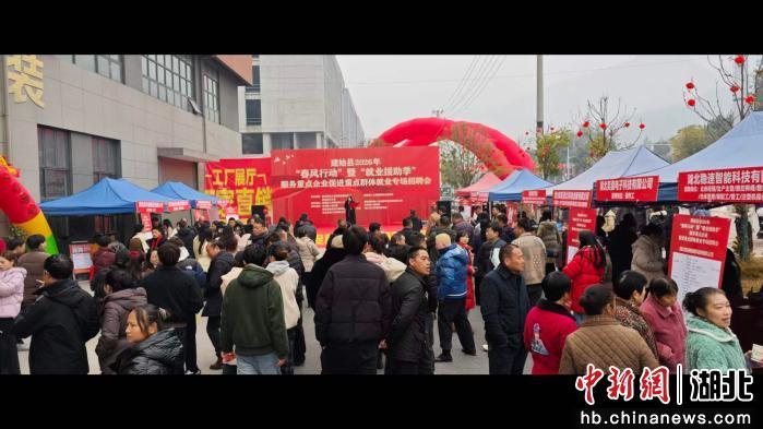 中新网湖北新闻2月7日电 (向继武 王伟霖 张晴)湖北省建始县2026年首场“春风行动”暨“就业援助季”专场招聘会6日在县工业园区举行,为求职者与企业搭建起精准高效的对接平台,拉开新年稳就业、保民生、促发展的序幕。