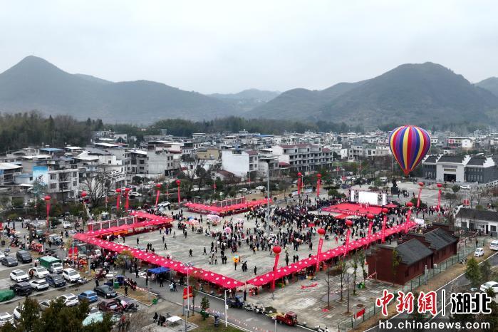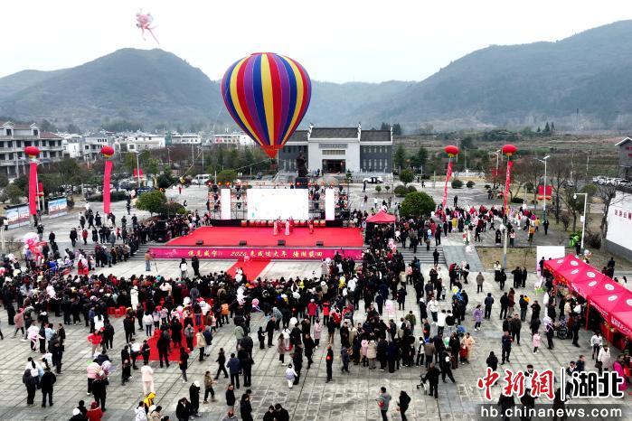 中新网湖北新闻2月8日电 (刘建平 黎猛 付婧烨)马年新春的脚步日渐临近,年味在湘鄂赣三省边区悄然升腾。2月7日,一场集红色文化、年俗体验、商贸展销于一体的三省百姓新春嘉年华活动,在湖北省通城县塘湖镇荻田村广场热闹上演。