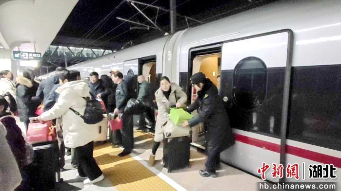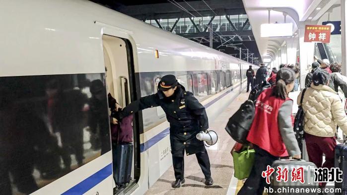 中新网湖北新闻2月9日电 (邓华铭 胡丽沙 豆常翠)2月8日21时51分,随着深圳北至钟祥南G1033次返乡高铁务工专列顺利抵达,沪渝蓉沿江高铁武宜段3趟务工专列全部到站,至此1700名荆门籍务工人员顺利返乡。这是京山、钟祥两市迈入高铁时代后,当地群众首次搭乘高铁“点对点”返乡。