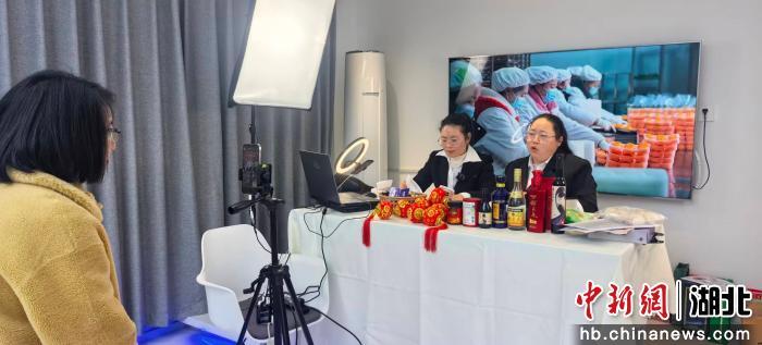 中新网湖北新闻2月10日电(谢小青 黄容)2月7日晚,位于宜昌市夷陵区的湖北三峡银岭冷链物流产业园内,“夷陵优品”的直播间里腊香四溢、年味扑鼻。腊货、苕酥、红油包子等精选年货摆得满满当当,主播正一边试吃一边热情吆喝。弹幕里“新年快乐”“已下单”不断刷屏,点赞飙升。