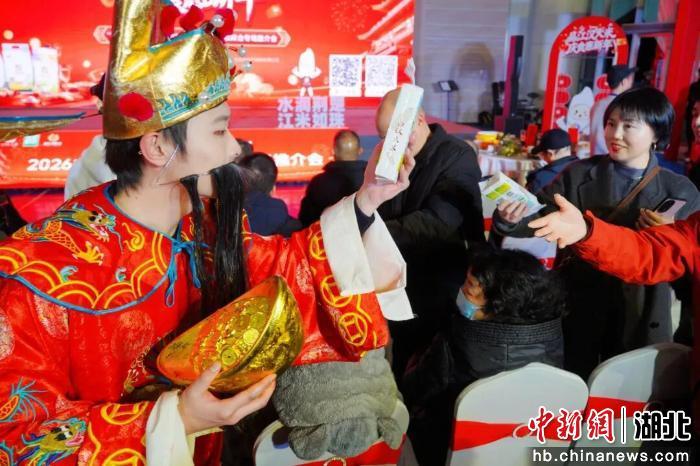 中新网湖北新闻2月11日电(胡伟 李倩)品江汉大米,庆食惠新年。2026年2月10日(农历北方小年),由湖北省粮食局主办,湖北长江垄上传媒集团、湖北省粮食行业协会、湖北垄上优选绿色科技有限公司承办的“荆楚粮油促销季”2026中国农民春节联欢会专场推介活动在荆州市文化体育中心拉开帷幕。