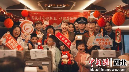 中新网湖北新闻2月12日电 (杨会 李飞国)2月10日,北方小年,沿江高铁武宜段开通后迎来首个春运,G6772次列车厢内红灯高挂,诗意流淌,“诗词接龙”热烈展开,一场“高铁诗会迎新春”温情上演。