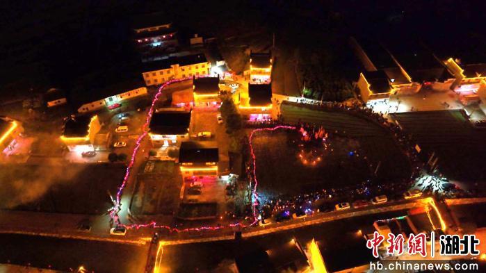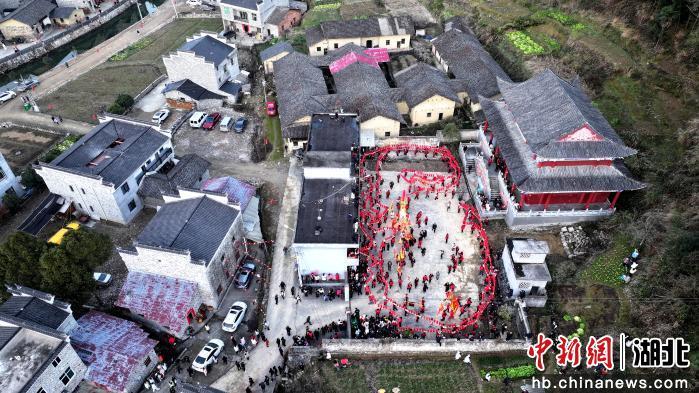 中新网湖北新闻2月12日电 (程思 张洁)湖北通山县洪港镇江源村11日张灯结彩、人潮涌动。一场以“板凳龙”巡游为核心,融合年货集市、民俗展演与非遗体验的新春盛会在古村热闹上演,吸引周边省市游客慕名而来。