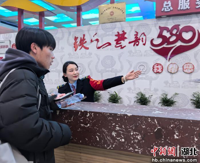 中新网湖北新闻2月13日电 (陶诚 陈俊 张樊)“学生票该从哪里核验”“您好,我行动不便需要轮椅助行服务”。12日下午,在武昌站“580”服务台,车站客运值班站长于安琪一刻不停地为南来北往的旅客排忧解难。