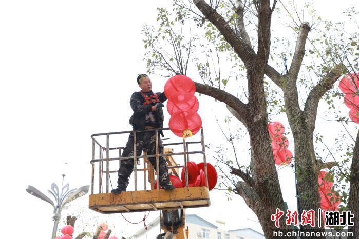 中新网湖北新闻2月14日电(黄华 黄梅)“大红灯笼一挂,过年的热闹的氛围一下子就出来了。”春节临近,漫步在巴东县城区,市民们啧啧称赞,映入眼帘的是一盏盏红彤彤的灯笼,悬挂在行道树上,喜迎新春的仪式感瞬间溢满大街小巷。