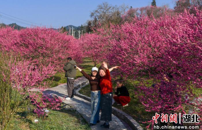 中新网湖北新闻2月21日电(陈燕利 汤煜东)春节假期,湖北省来凤县革勒车镇正南梅园梅花盛放、游人如织,成为新春休闲出游热门打卡地,景区迎来春节旅游客流高峰。