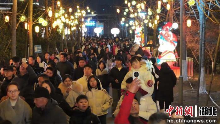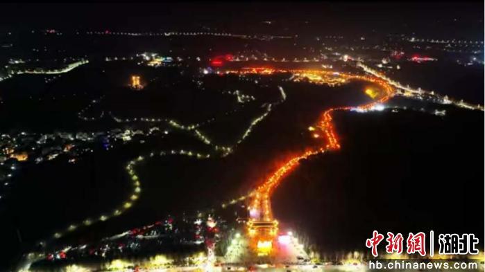 中新网湖北新闻2月22日电 (程淇 杨明月 李茵)正月初五晚,湖北广水市印台山文化生态园内人潮涌动,年味正酣。璀璨花灯与欢声笑语交织,将这座城市的夜空点亮。