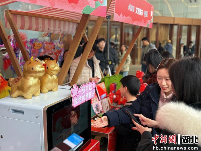 活动现场设有市集区与互动打卡区。市集区共设23家摊位,分为非遗市集和青春市集两大板块:楚香、武汉剪纸、吕氏棕编等非遗代表性项目传承人现场展示手作,吸引市民体验;新华书店、京东MALL带来潮玩周边与原创文创,彰显青年风采。