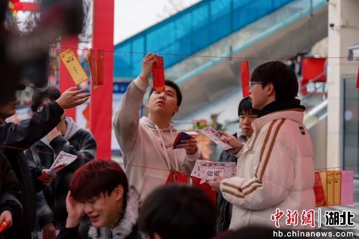 作为当天人气最旺的区域,学校食堂门口的“主题灯会”将传统民俗与新学期的期盼巧妙融合。红彤彤的灯笼下,一场趣味横生的猜灯谜活动率先拉开序幕。“猜灯谜·马上有喜”,同学们或独自凝思,或结伴讨论,答对者即可获得寓意吉祥的小马挂件,现场笑声不断,兑奖处很快排起了长队。