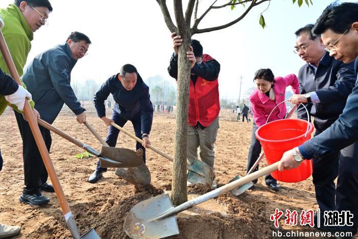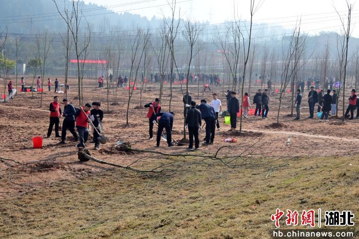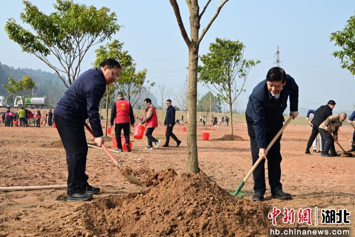 宜昌市2026年春季义务植树活动3月10日在柏临河生态廊道举行,300余人为城市充“植”添绿。活动共栽植宜昌楠、三峡槭、栾树、水杉等乔木约500株,配套种月季、结缕草、疏花水柏枝等地被植物1.3万平方米。近年来,宜昌紧紧围绕“世界级山水城市样板”的战略定位,全面推进城市品质提升,创新推行“山头林长”,56家市直部门包保13座山体,数万株树木在荒山“落地生根”。在义务植树、林相提升、养护管理的共同推动下,600余处陡坎披上“绿装”,呈现出“上垂下攀、前栽面植、见缝插绿”的三维景观。(郭晓莹 摄)