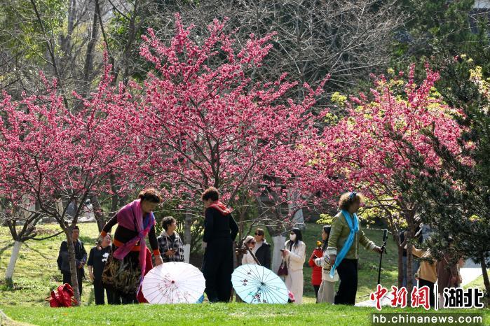 3月10日,湖北武汉天气晴好,市民游客在汉口堤角公园踏青赏花,尽享春日美好。