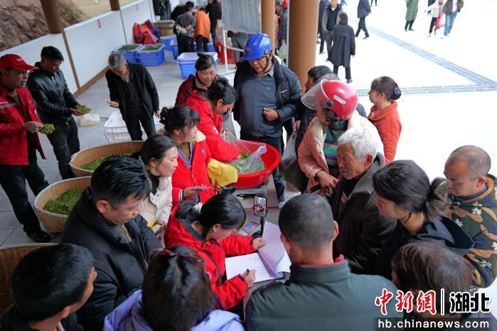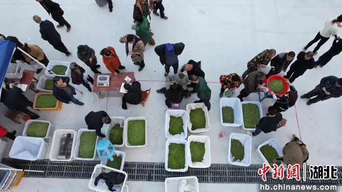 中新网湖北新闻3月12日电 (谢顺 赵嵩 张靖)3月10日,在湖北省恩施市芭蕉侗族乡茶叶鲜叶交易市场,茶农们正忙着销售春茶鲜叶。