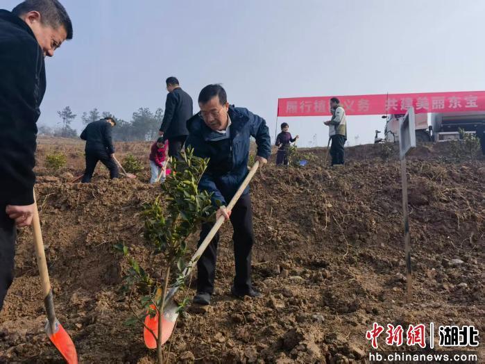 中新网湖北新闻3月12日电 (胡晓明)3月12日,在第48个植树节到来之际,荆门市东宝区人大常委会组织各级人大代表,齐聚子陵铺镇八角村,开展“聚力支点建设·代表行动”义务植树活动。多年来,东宝区人大常委会持续组织人大代表开展义务植树活动,以植绿护绿的实际行动践行绿色发展理念,服务助力支点建设。
