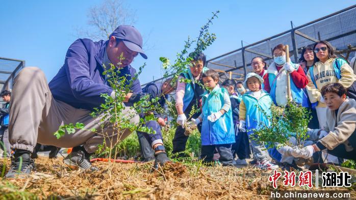 各类公园也积极探索,创新义务植树尽责形式。武汉动物园组织“我为动物种口粮”主题植树活动,指导30余名三镇游客,种下“好养活又好吃的”小叶女贞1200余株,后续将为川金丝猴、黑叶猴等灵长类动物提供源源不断的新鲜口粮。江汉区莱茵口袋公园结合城市更新,组织300多位市民种下水杉、池杉、栾树等树苗100株,为城市边角绘就新的“绿色拼图”。紫阳公园开展“植树+科技”趣味尽责活动,40余组亲子家庭与特别志愿者机器人“豆皮”共植新绿。