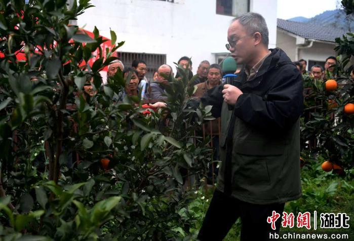 中新网湖北新闻3月16日电 (向传辉 邓仕双)3月14日,华中农业大学园艺林学学院教授刘永忠走进巴东县官渡口镇大坪村,在橘园里开展了一场“干货满满”的柑橘综合管理现场技术培训。来自该镇大坪村、茅坝村和东坡社区的100余名村组干部、市场主体和种植大户在家门口享受了一场“科技大餐”。