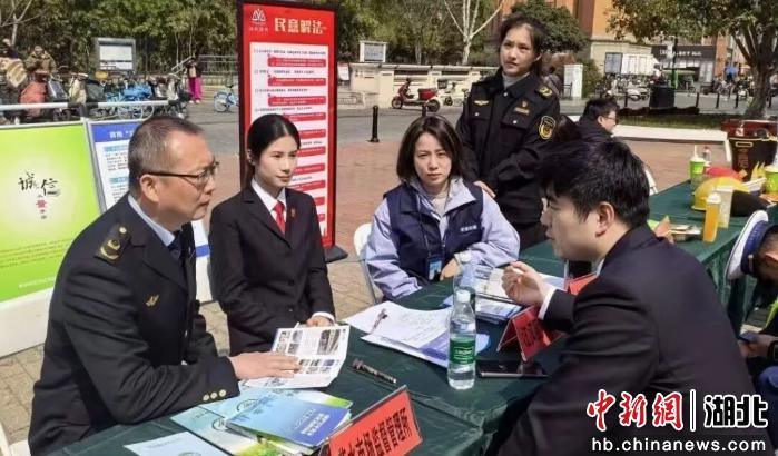 近日,武汉市江汉区市场监督管理局联动多部门多单位,在江汉路开展“3·15”系列活动,聚焦群众消费痛点难点,以创新举措传递维权温度。活动现场,区综治中心工作人员积极参与,热情提供合同纠纷解答、矛盾纠纷化解等服务,为市民和游客送上全方位维权保障。