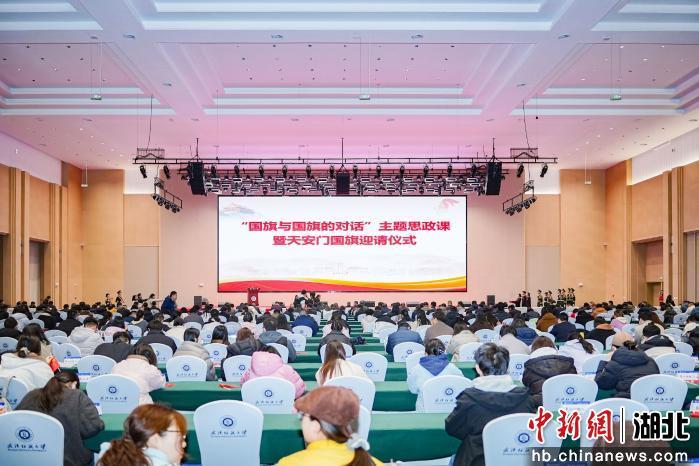 中新网湖北新闻3月18日电 (李港 程鹏)武汉纺织大学17日举行“国旗与国旗的对话”主题思政课。现场,天安门国旗与嫦娥五号、六号月面国旗同框而立,600余名师生在跨越时空的信仰对话中厚植家国情怀,凝聚奋进力量。