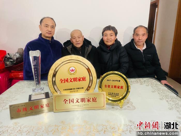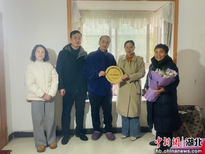 中新网湖北新闻3月19日电 (朱俊澄 袁佳丽)春雨霏霏,万物复苏。3月17日,咸宁市咸安区双木佳苑小区内,一场特殊的授牌仪式在细雨中温情上演。咸安区委宣传部、浮山街道及香城社区相关负责人一行,为荣获“全国文明家庭”称号的熊良淦家庭举行光荣牌授牌仪式,将这份沉甸甸的荣誉送到家门口。