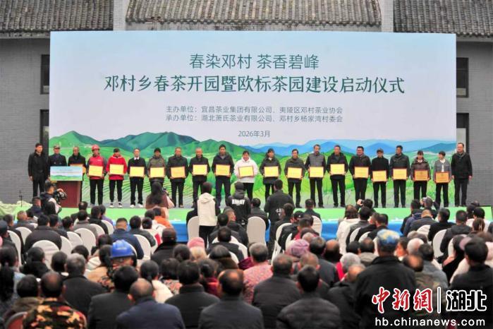 中新网湖北新闻3月20日电(张国荣 洪艳芳 黄勤)3月20日,湖北省宜昌市夷陵区以“春染邓村 茶香碧峰”为主题的邓村乡春茶开园暨欧标茶园建设启动仪式,在宜茶集团湖北萧氏茶业有限公司的杨家湾茶叶工厂举行。