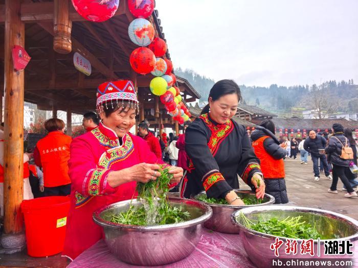 中新网湖北新闻3月21日电 (税浪 杜迪纳 李维君)3月20日,湖北省咸丰县迎来一年一度的春社文化活动。来自全国各地的游客与当地民众欢聚一堂,赏民俗、品社饭、听社乐、享春趣,共赴一场“丰收之约”。当天,咸丰县第四届“来咸丰·庆丰年”春社文化活动正式启动,丰富多彩的民俗活动陆续展开。
