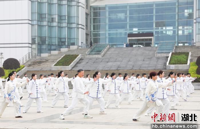 中新网湖北新闻3月22日电 (胡梦佳 姚荣奇 王鹏森)3月21日是联合国教科文组织设立的“首个国际太极拳日”,在湖北中医药大学图书馆广场上,师生代表、离退休人员、社区居民百余人组成的方阵凝神起势,在一招一式间传承非遗文脉,在一呼一吸中体悟中医养生智慧。