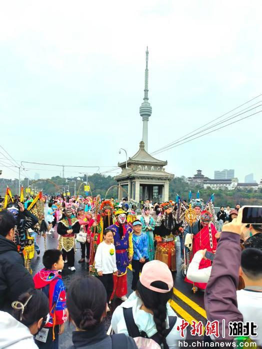 上午9时许,所有选手已通过长江大桥汉阳引桥。一场名为“跟着汉马走大桥,花点时间游武汉”的文旅活动在万里长江第一桥接续举行。数千名市民、游客与100名专业表演演员,以徒步巡游、文化展演、互动打卡的方式,从汉阳桥头出发,徒步登上这座68岁的大桥,迎来了罕见的“限时步行时刻”。