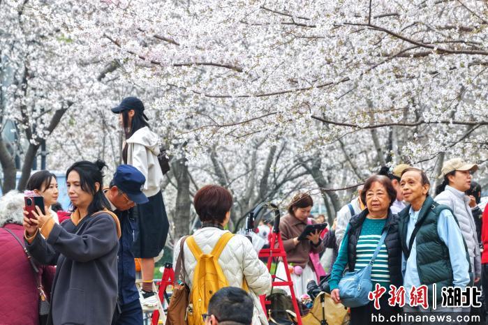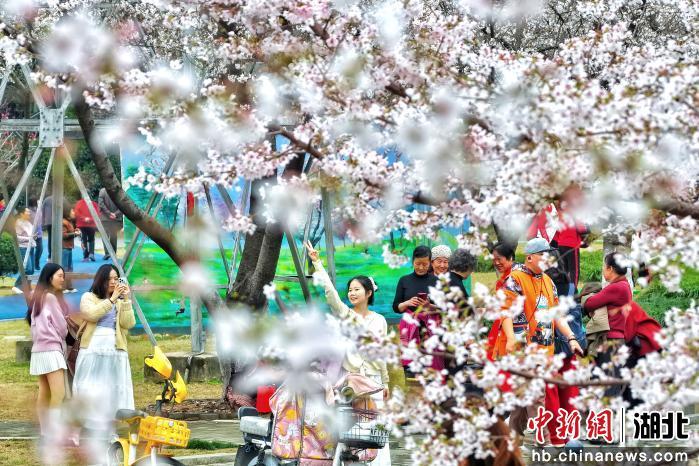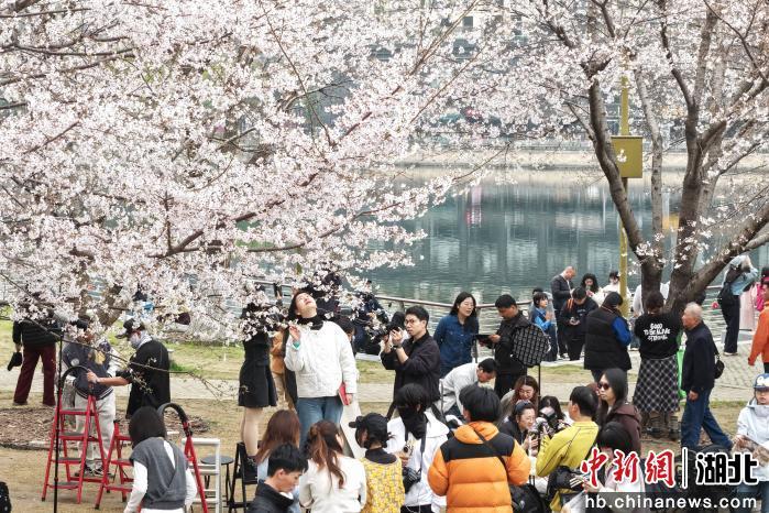 3月22日,武汉市江汉区西北湖畔樱花盛放,大批市民、游客乐享春光。西北湖是武汉中心城区规模较大的樱花观赏地之一,以“成规模、可夜赏”的特点,成为赏樱热门之选。“花韵春光江汉揽胜”2026年江汉区“风雅西北湖”赏樱艺术季同期举办,将市集、演出、夜樱秀等近20场活动搬至樱花树下,进一步丰富游客赏花体验。(周星亮)