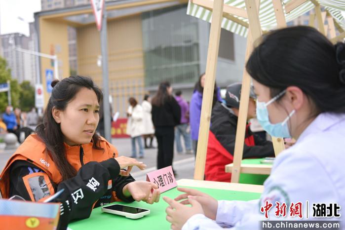 量血压、测血糖、问诊把脉、心理疏导……来自襄阳市第一人民医院“益心一医”青年博士志愿服务队的10余位医生,耐心地为陆续赶来的外卖骑手、快递小哥、网约车司机提供健康服务。