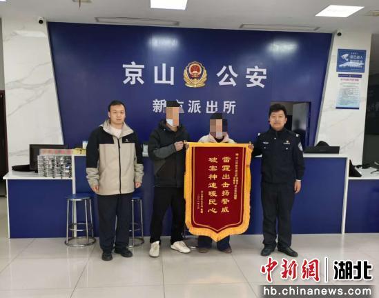 中新网湖北新闻3月27日电 (钱昌宇 姚寅)“没想到这么快就帮我们追回血汗钱,你们真是老百姓的贴心人!”3月26日,市民郭先生来到京山市公安局新市派出所,将一面印有“雷霆出击扬警威,破案神速暖民心”的锦旗送到民警手中,紧紧握住民警的手连连道谢,由衷感谢京山公安快速破获这起入室盗窃案,帮他们挽回财产损失。