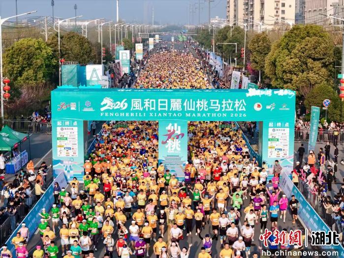 中新网湖北新闻3月29日电 (李兵)2026仙桃马拉松29日激情开赛,12000名跑者奔跑在“华中地区最平坦赛道”,用铿锵的脚步踏响春日仙桃的活力节拍,感受“体操之乡”的冠军精神,用放松的身心体验江汉明珠的城市魅力。