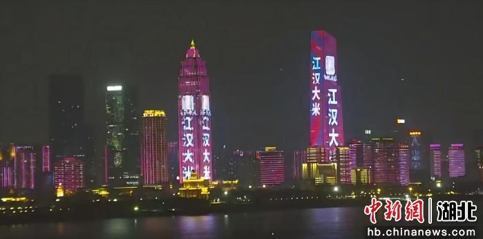 当晚,长江二桥至鹦鹉洲大桥沿线楼宇被依次点亮,“江汉大米”品牌标识、宣传标语在流光中交替出现,与江面波光交相辉映,形成绵延25公里的璀璨画卷。