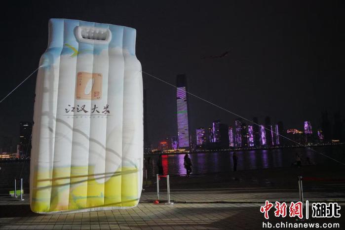 中新网湖北新闻3月30日电 长江之畔光影璀璨,江滩市集米香四溢。3月28日晚,“江汉大米香光影绘两江”定制灯光秀点亮武汉两江四岸,同步拉开“江汉大米”江滩嘉年华活动序幕,将持续近三个月的“荆楚粮油”品牌推广季推向高潮。