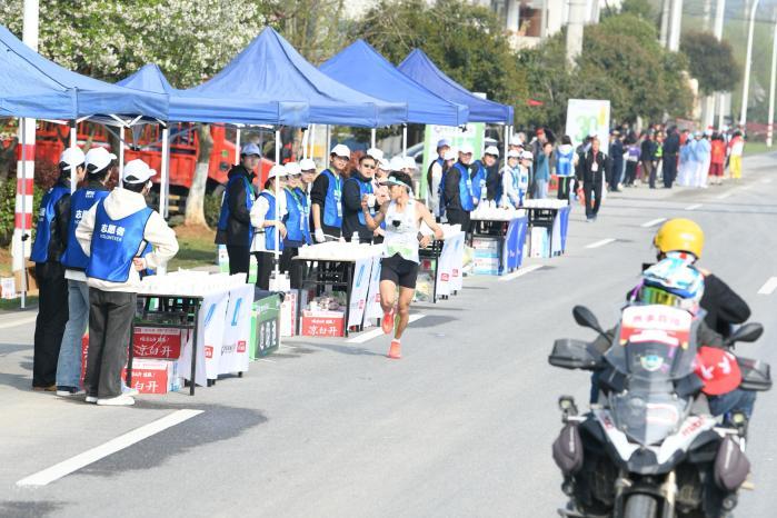 赛道终点,一碗热腾腾的贺胜鸡汤早已备好,暖意从舌尖漫至心底。赛事主办方专门安排车辆运送温泉水至现场,为完赛跑友提供独特的“樱花温泉足浴”。特色补给点上,温泉喷雾为奔跑的选手送去清凉。桂花糕、赤壁青砖茶等咸宁美食,让跑者在挥洒汗水之余,解锁“舌尖上的咸宁”。