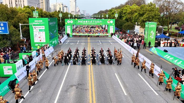 发令枪响,樱花雨腾空而起,战马奔腾,铠甲武士列队前行将“三国赤壁,英雄咸宁”的豪迈气魄尽显。