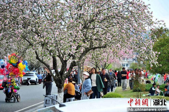 中新网湖北新闻3月30日电(张国荣)3月29日,湖北省宜昌市夷陵区小溪塔街道峡江路花香四溢,海棠花游园活动吸引众多市民游客漫步花海,共赴春日之约。