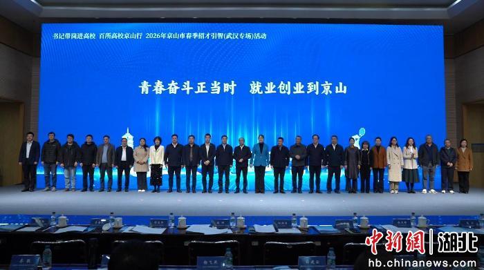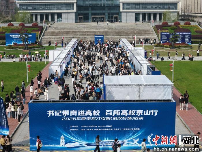 中新网湖北新闻3月30日电(李鹏飞)3月27日,京山市“书记带岗进高校”“百所高校京山行”2026年春季招才引智(武汉专场)活动在湖北工业大学举行。来自华中农业大学、华中师范大学等23所高校的师生代表齐聚一堂,共赴一场人才与城市的“双向奔赴”。