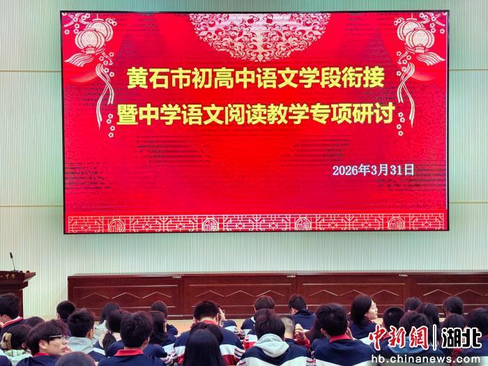 中新网湖北新闻4月1日电 (余立飞)黄石市初高中语文学段衔接暨中学语文阅读教学专项研讨活动3月31日在黄石一中举行。黄石各县(市、区)初高中语文教研员、骨干教师200余人齐聚一堂,共同探索语文成长课堂建设与初高中语文教学模式。
