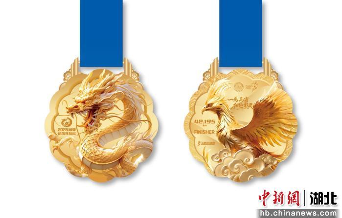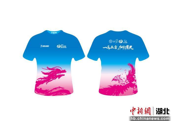 奖牌与参赛服设计彰显龙凤文化与土家特色。全马奖牌为金色、半马为银色,双面浮雕龙凤造型,融入西兰卡普与祥云纹样,寓意龙凤呈祥、两省同心。参赛服采用蓝粉渐变,衣身印腾龙祥凤图案,背面标注赛事主题,兼具民族韵味与运动活力。