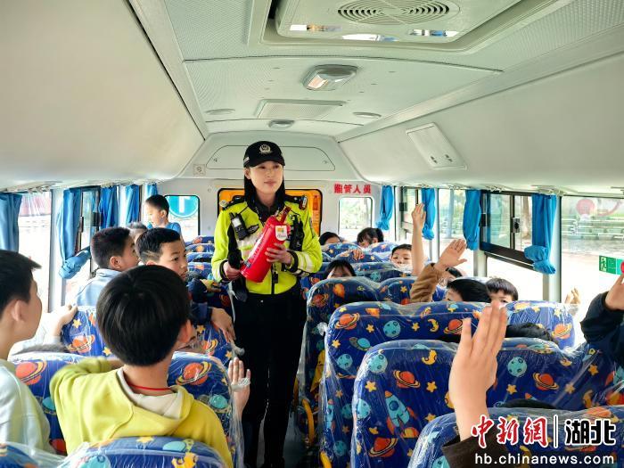 中新网湖北新闻4月2日电 (尹聪)“校车起火了怎么办?安全锤怎么用?”4月1日,全国中小学安全教育日来临之际,黄石市公安局交通管理支队黄石港大队走进沈家营小学,开展“知危险会避险能自救”主题交通安全宣传活动,通过“课堂宣讲+实景演练+互动体验”的沉浸式教学,为全校师生送上一堂生动实用的交通安全“必修课”,用实战化教学筑牢校园交通安全防线。
