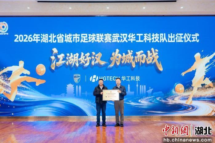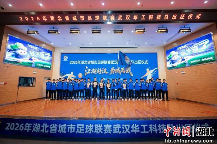 中新网湖北新闻4月3日电 (田卉)“江湖好汉 为城而战”2026年湖北省城市足球联赛武汉华工科技队出征仪式2日在武汉塔子湖足球公寓发布厅举行。2026年湖北省城市足球联赛揭幕战将于4月12日正式打响,武汉华工科技队作为武汉代表队出战。