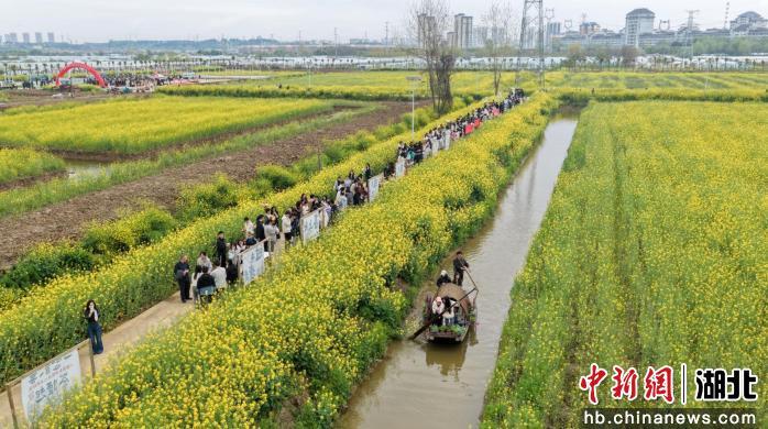 中新网湖北新闻4月4日电 (程晓璐 陈冲 郑景升 张晨阳)春回大地,万象更新。4月3日,武汉生物工程学院稻香莓语现代农业产业园内,300余亩油菜花迎来盛花期,该校首届油菜花节在此举行。