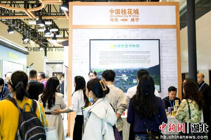 走进咸宁馆,桂花、淦河等独具特色的城市元素扑面而来。展品涵盖食品饮料、生物医药、科技商务服务等领域,展馆内人头攒动,客商们驻足咨询、洽谈合作,现场气氛热烈。各企业带来的创新产品和健康解决方案,充分展示了咸宁在大健康产业链上的综合实力与发展潜力。