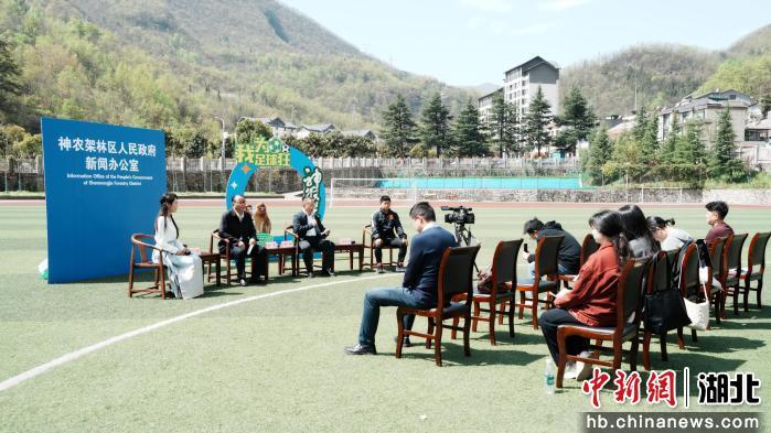 中新网湖北新闻4月9日电 (税浪 张茹)从会议室搬到绿茵赛场,一场别开生面的新闻见面会9日在神农架林区实验初级中学足球场举行。四周青山环抱,林海相伴,与会者共同见证2026年湖北省城市足球联赛(简称“楚超”)神农架赛区的创新实践。