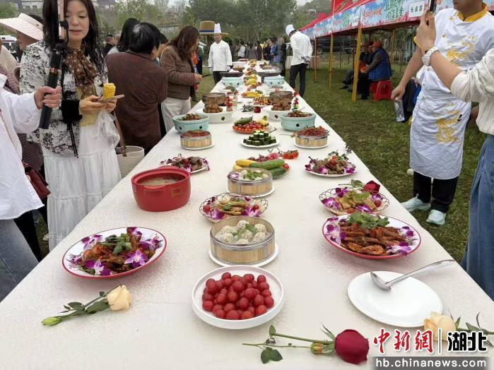 中新网湖北新闻4月10日电 (刘冬 曾瑞鸿)4月10日,春光明媚、杜鹃绽放,“詹王故里·广水厨嫂”杜鹃花开菜羹香活动在广水市蔡河镇老虎岗村举行。