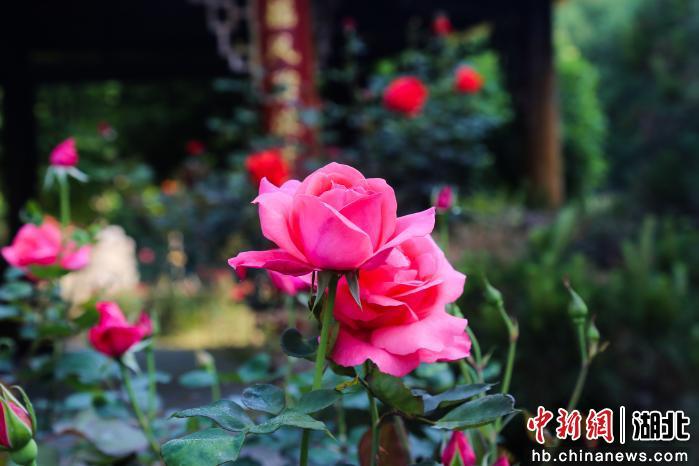 中新网湖北新闻4月19日电(万娜)春风吹暖东湖,落雁景区的玫瑰园已进入盛花期,园内六成花海已然绽放,红、粉、白、黄各色玫瑰、月季争相吐艳,预计五一前后将迎来全园盛花期。