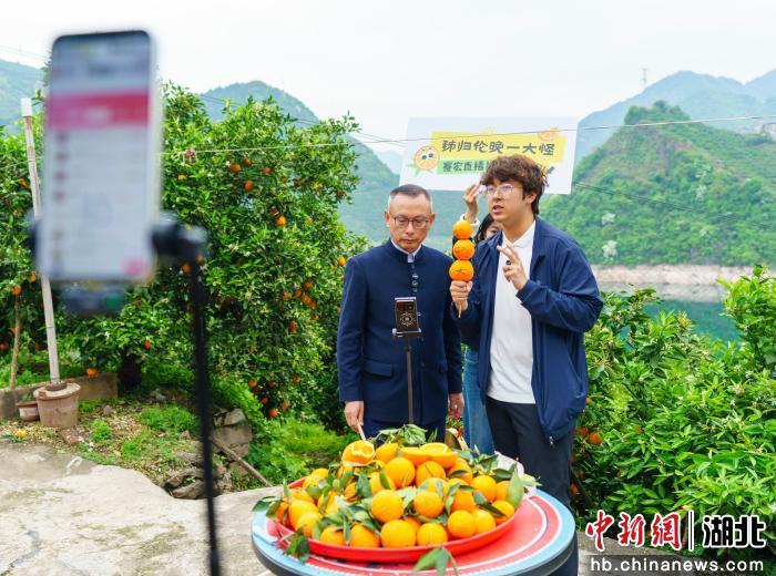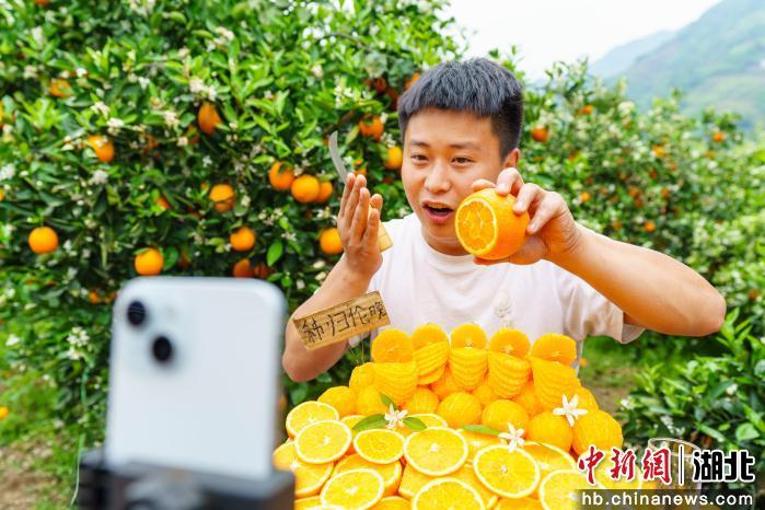 中新网湖北新闻4月20日电(李彩云 郑可欣 邓飞宇)“欢迎来到蹇爹爹直播间,秭归伦晚一大怪,蹇宏直播按吨卖……”在秭归县沙镇溪镇千将坪村江边的橙园里,楚商联合会秘书长蹇宏化身主播,为伦晚脐橙带货。一款“9999元每吨”的助农链接最终成交8单,销售额达79992元,一度让直播间位居生鲜榜第一名。连同常规链接售出的近千单,这场三小时直播累计带动销售11.8万元。