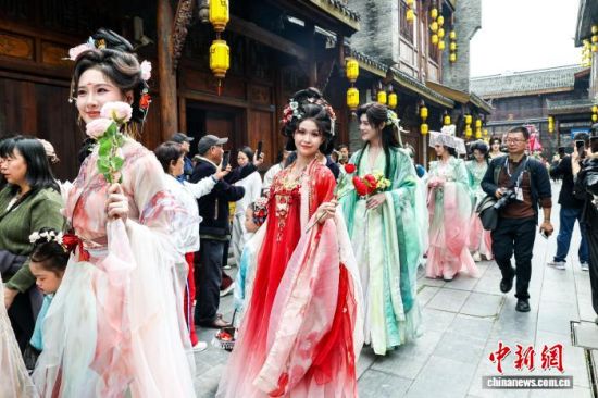 武汉汉口里花朝节启幕 传统服饰巡游共赴春日之约
