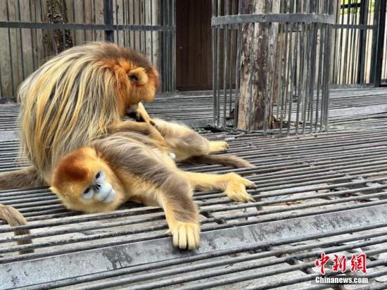 湖北寒潮来袭 金丝猴“雪中作乐”