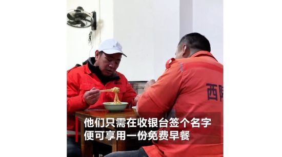 湖北宜昌:环卫工吃“免费早餐” 神秘顾客默默结账6万元