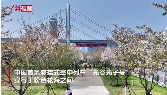 科技邂逅浪漫!武汉空中列车穿梭樱花海 赛博春色引客打卡